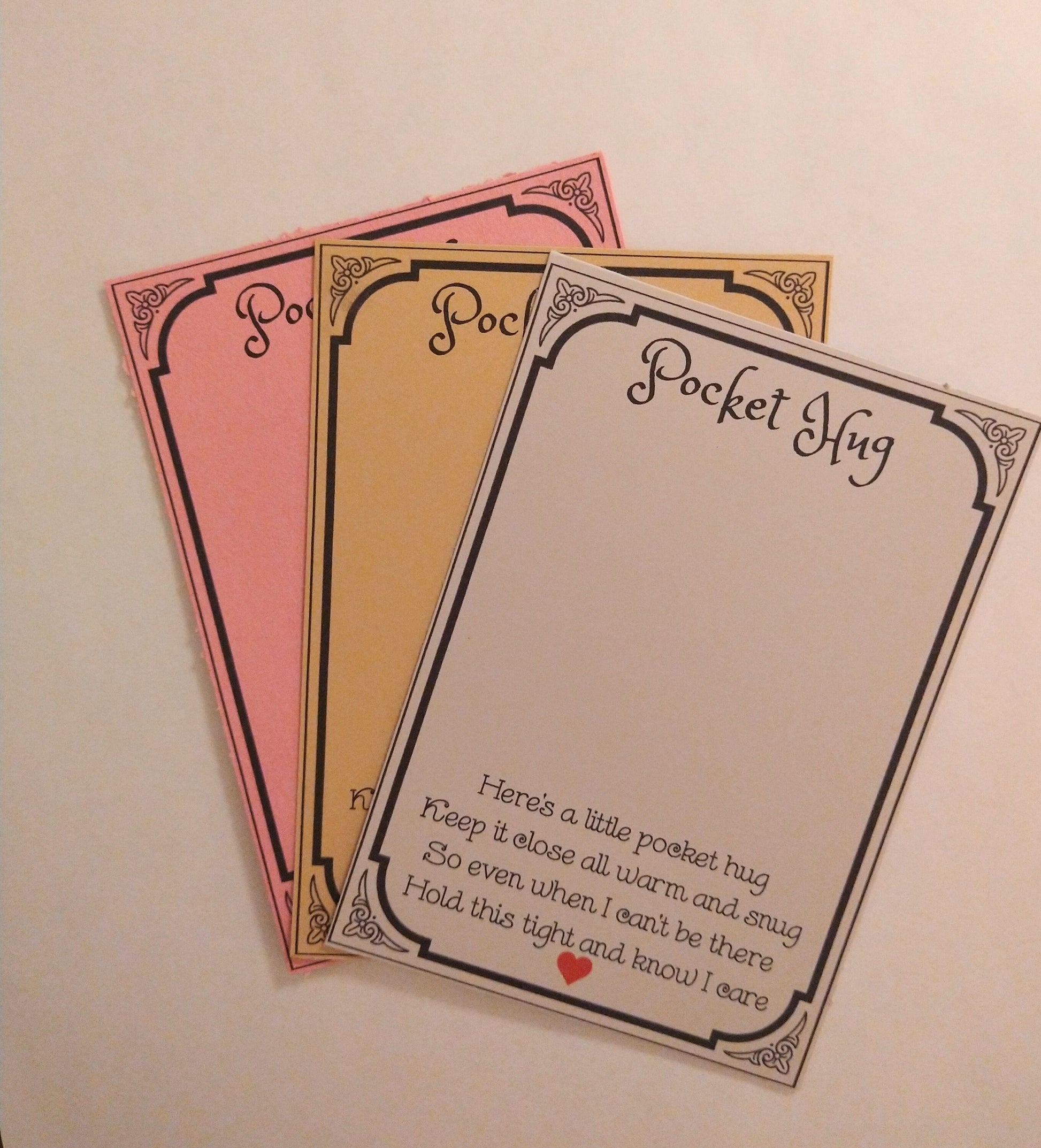 Our adorable handmade hearts come with a heart key chain and dangling light pink jeweled angel. Set on a pocket hug card with the inscription: