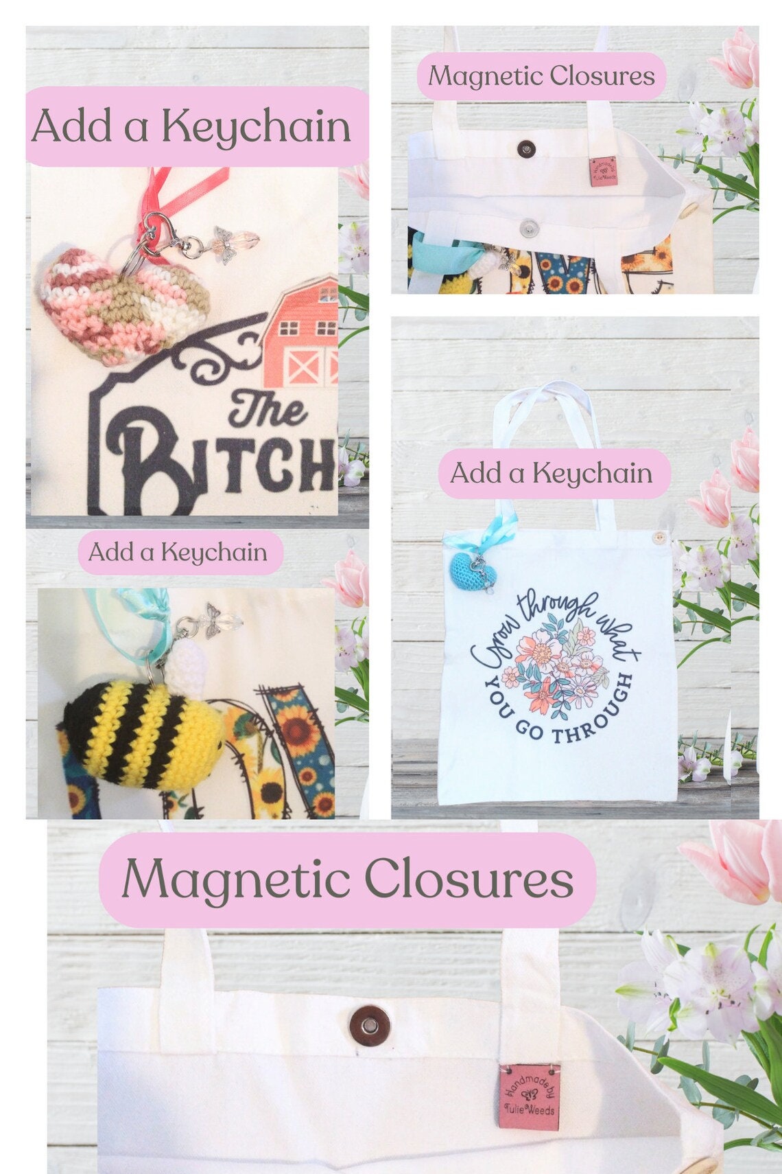 Our bags are sublimated, which means the design is set into the fabric. Sublimation lasts longer and offers a vibrant color. There's no cracking or peeling off. They are pretty much one with the fabric. Totes can be used as a purse, book bag,Halloween trick or treat bag, Holiday gift bag, grocery bag, Beach totes, great gift idea, fill it with anything, tons of things, Lots of Candy, these bags are durable, quality made. Canvas totes.